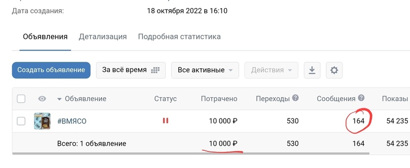 • - Тестовый бюджет составил 10 000 рублей